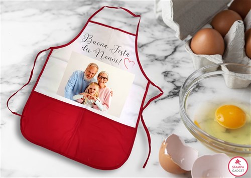 Il grembiule da cucina, elemento fondamentale per le casalinghe e per tutti gli appassionati di cucina. Rendi straordinaria la tua esperienza in cucina, personalizza con i tuoi bellissimi scatti il grambiule per ricordare sempre i momenti migliori della tua vita. Simpatico ma soprattutto accessorio funzionale per la tua cucina, realizzato in poliestere, di colore bianco, con doppia tasca anteriore e rifiniture colorate Area di stampa: 25 cm x 37 cm, una grande idea regalo.